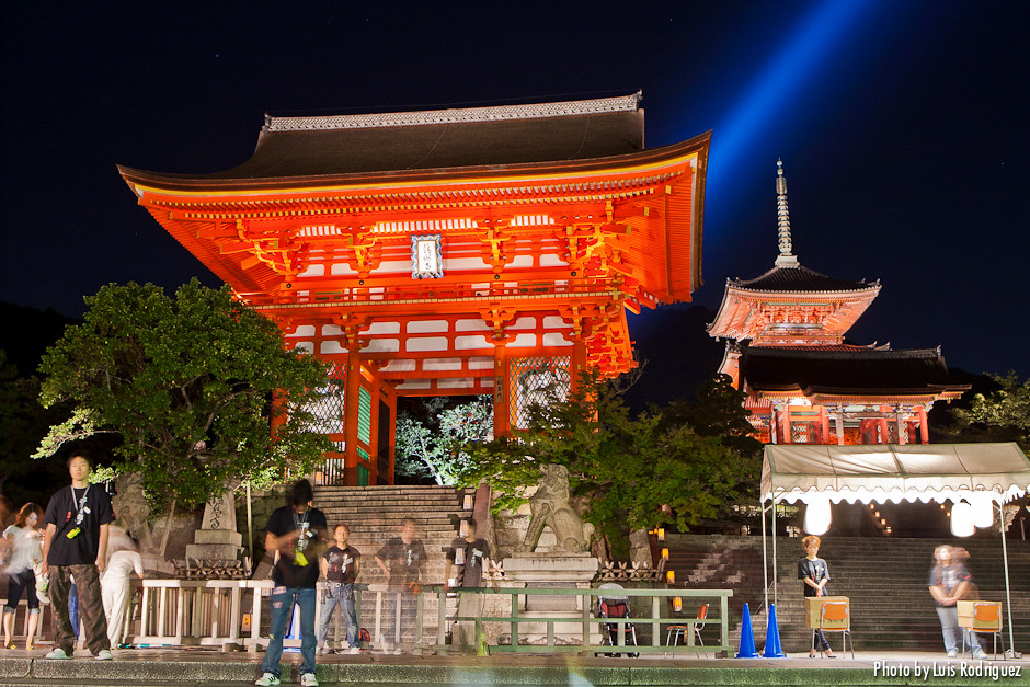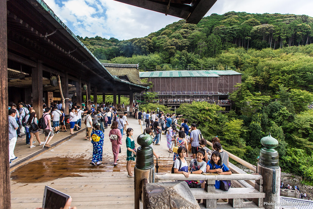 The Kiyomizudera or Kiyomizu-dera temple (清水寺 or ‘temple of pure water’) is a group of temples and religious buildings located in the Higashiyama district, east of Kyoto. It was declared a UNESCO World Heritage Site in 1994 and is, in its own right, one of the most special sights in the city.