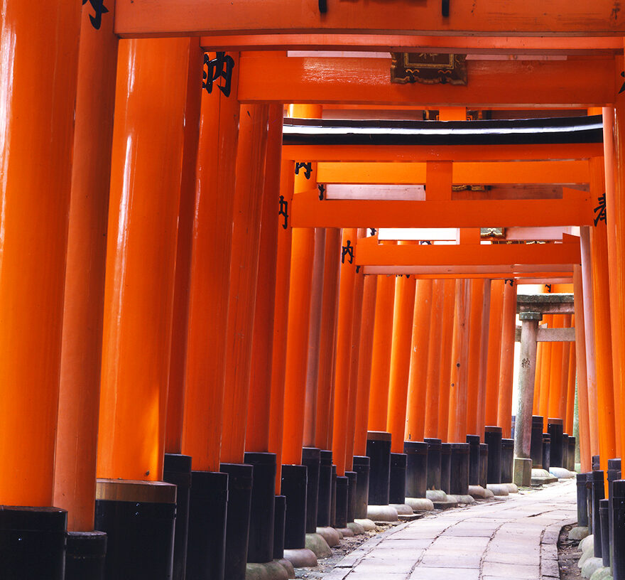 Santuario sintoísta célebre por sus miles de torii rojos que forman senderos mágicos hacia la montaña Inari.