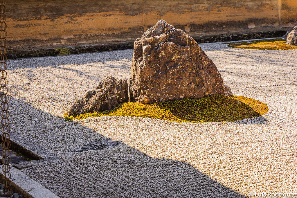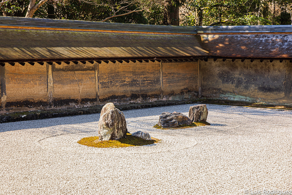 Para muchos, es el perfecto jardín zen porque tiene una particularidad: es imposible ver todas las rocas del jardín a la vez. Puedes intentarlo todas las veces que quieras, y colocarte en cualquier lugar que quieras: siempre habrá alguna roca escondida.