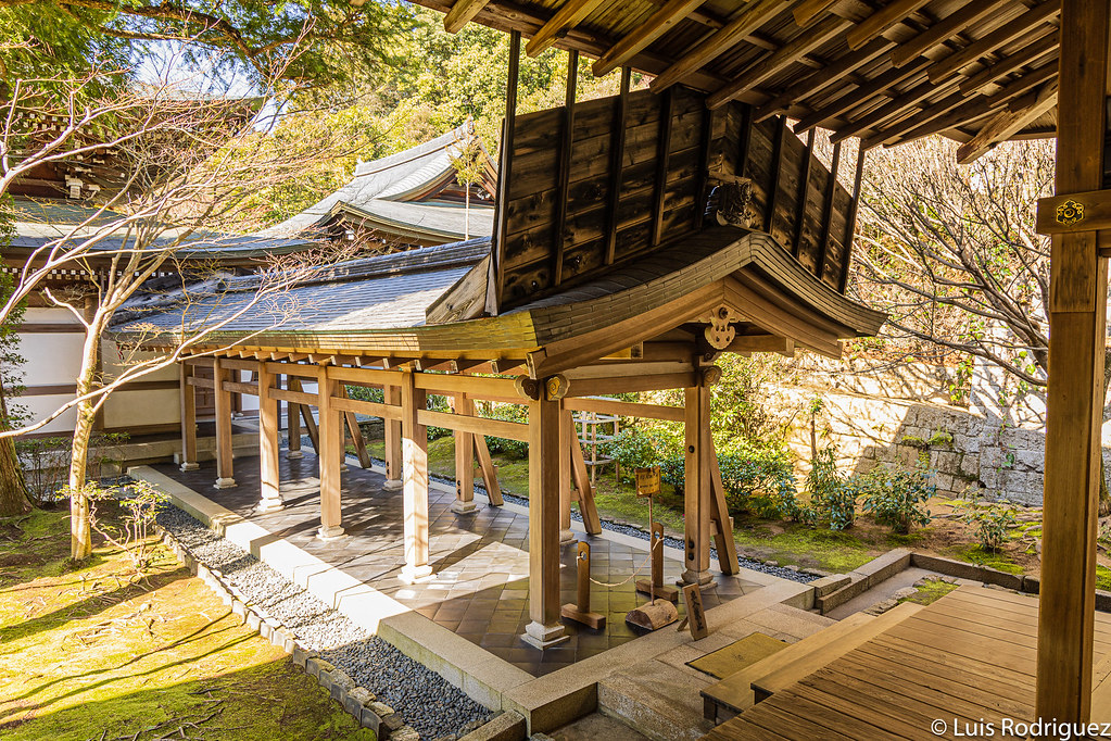 Una vez visitada la isla Benten, puedes volver al camino principal en dirección al templo. Párate antes de llegar a las escaleras de acceso, porque verás un precioso Buda de piedra, así como una pileta de agua tradicional.
